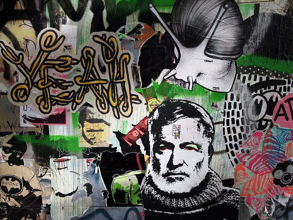 This famous name in the street-art spectrum is known for his character Little Lucy. It is inspired by a Czechoslovakian television series called ‘Little Lucy-Fear of the Streets’. He found the character bland and to make it interesting gave her a hobby of killing her pet cat. The paintings of El Bocho tell very impressive stories of the cat in a washing machine, and sometimes cooked as a kebab all painted on the walls of Berlin.