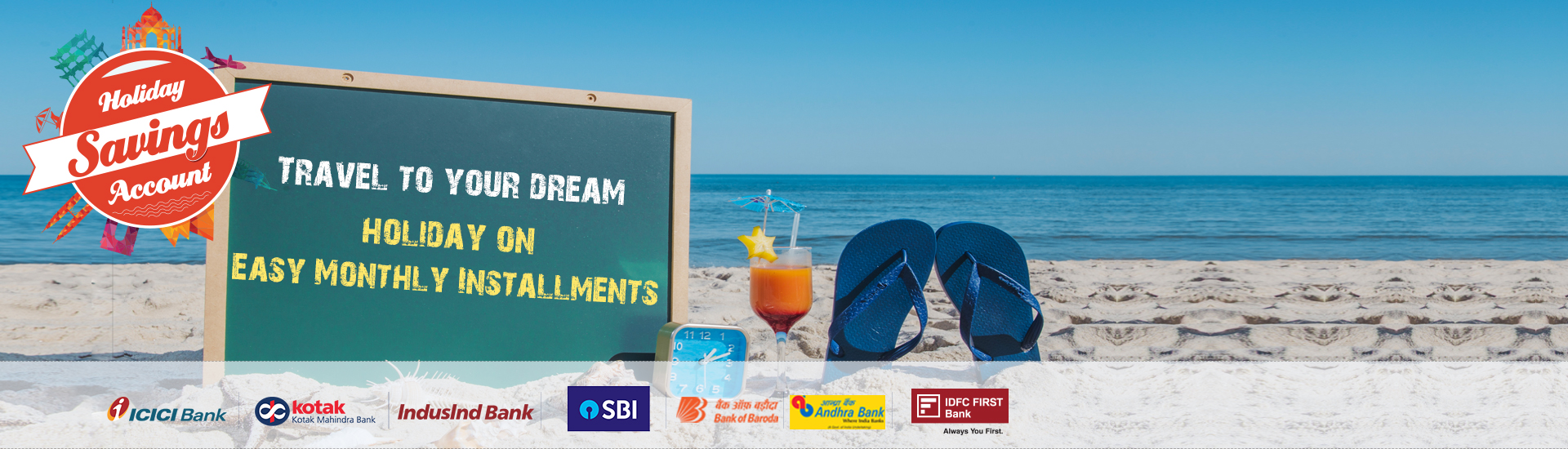 Thomascook Holiday Savings Account is a smartest and simplest way were you can plan your Holiday Goal while saving per month in Recurring Deposit with one of our Banking Partners for 12 months.